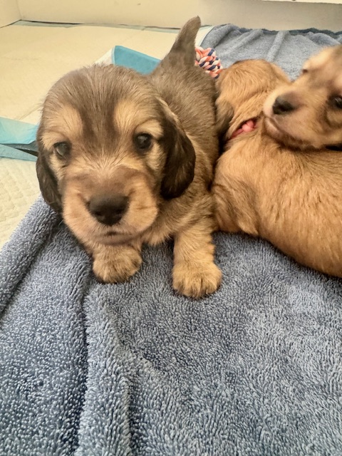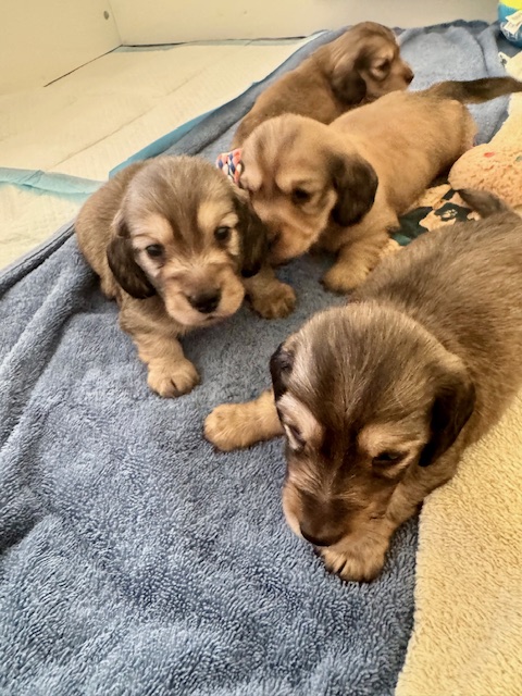 Sullivan’s Dream Dachshund’s offers healthy beautiful Dachshunds with wonderful temperaments. Our dogs are our passion and we adore every one of them! Our dogs are bred with the intention of improving the breed to produce beautiful, bright dachshunds with loving temperaments. Several of our keepers are used as therapy dogs in my counseling practice.