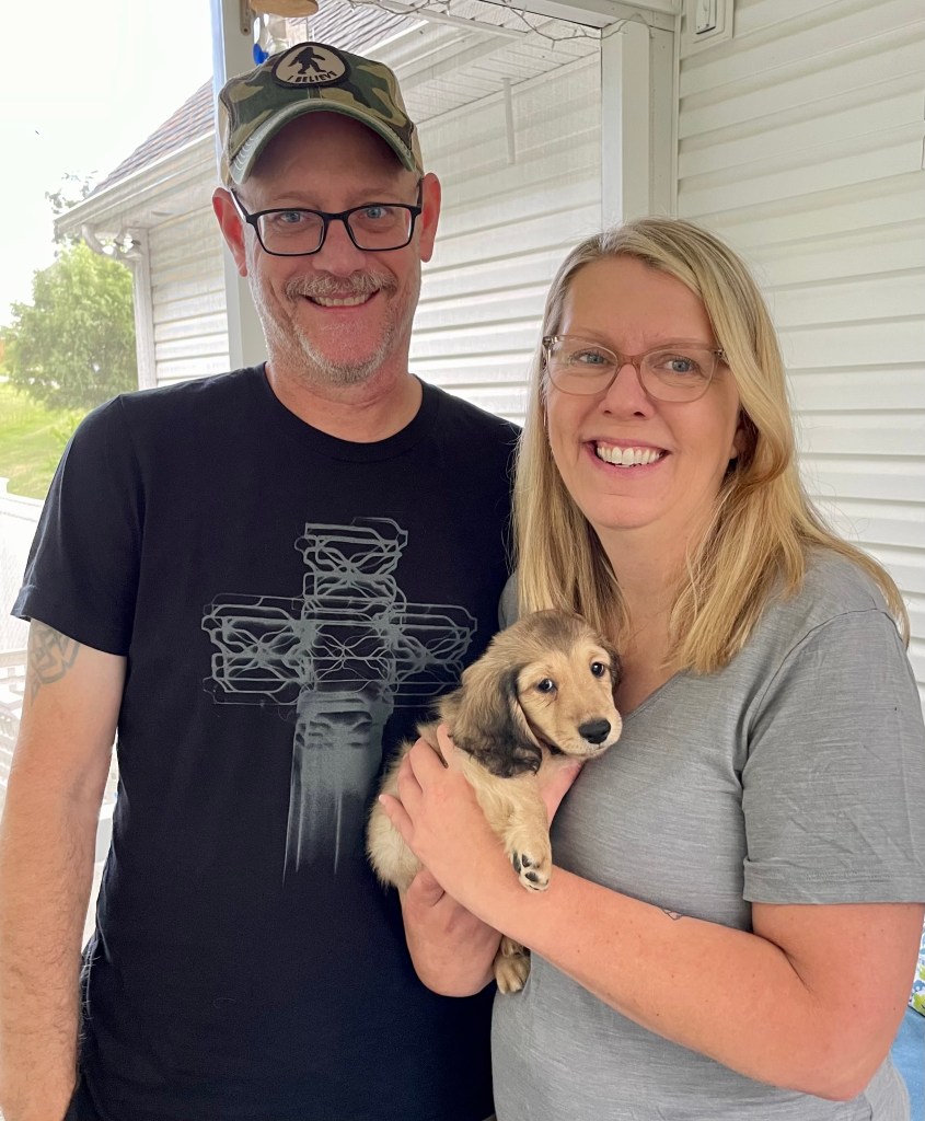 If you are considering adding a long-haired dachshund to your family, this is the breeder you need. You will go home with a beautiful, well-adjusted, well-socialized puppy complete with a fabulous temperament. Erin is a phone call or a text away from supporting you when you have one of her pups. I cannot imagine what more one might want from a breeder.We have beautiful, spunky girl (Violet) from a litter in March of 2021. We love her and many other people love her as well. – Tracy & Dan Wills