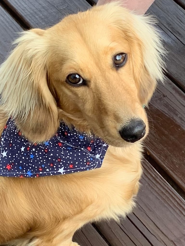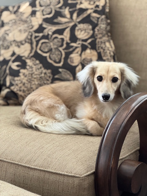 We got our handsome and sweet cream “Finn” from Erin and we are so thankful! From the first time we met Erin, her passion for and knowledge of the breed was undeniable. It was great to get to know her through the interview process and we appreciated the care she took in ensuring we were suitable “parents” and had breed experience. During the gestation period, she kept us updated with the medical progress and, as soon as the puppies were born, she started sharing photos, videos and milestone updates on a regular basis. She also welcomed us into her home for an early visit to meet the pups (once it was safe for visitors!) and took the time to help us choose our perfect new family member out of the available pups. Her in-home “nursery” was in her own room and was cozy, clean, safe and full of appropriate stimulation toys. The pups were so loved on and socialized from the start and her adult Dachshunds were also so sweet, kind and well behaved. The visit reaffirmed that we had absolutely made the right choice with Erin! After we brought Finn home a few weeks later, she generously continued to support us with “parenting” and training advice as needed and helped us reacclimate to those early puppy weeks. Finn is one of the best dogs we’ve ever had – he’s happy, healthy, sweet, loving, snuggly, spunky, playful and gorgeous! Whenever we take him places, he gets all the attention and people asking us how we found him – and we always happily recommend Sullivan’s Dream Dachshunds! Erin is the best!